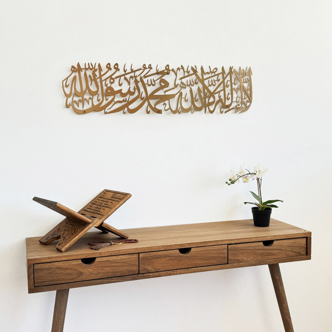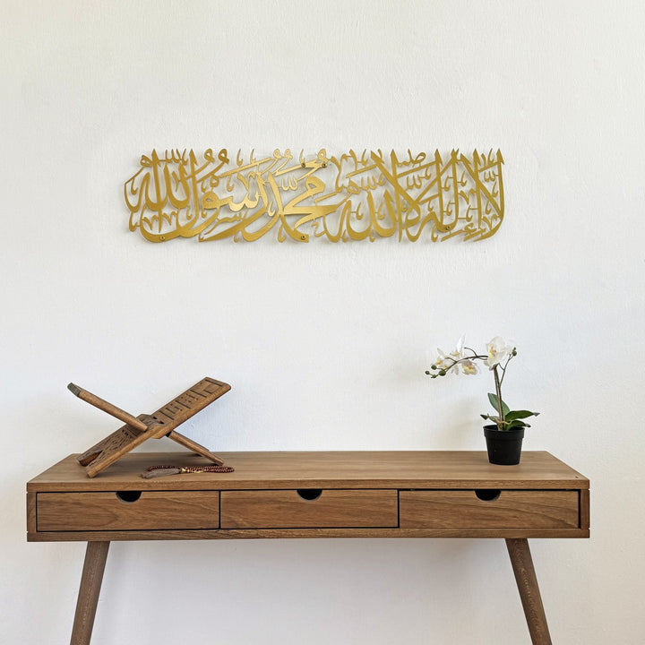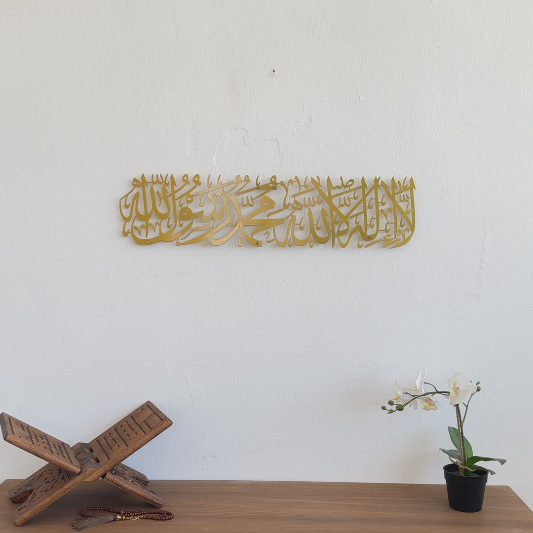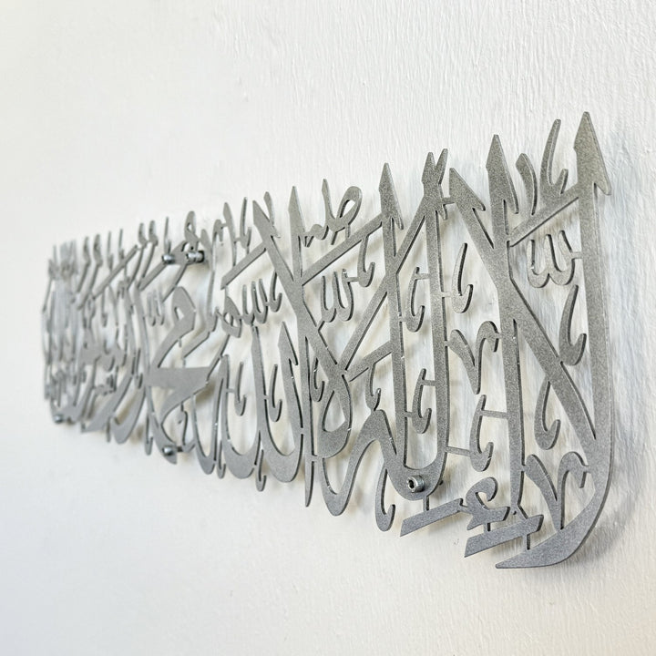 Gösterişli, dayanıklı ve çevreye duyarlı özellikleriyle dikkat çeken; Islamic Wall Art hizmet kalitesiyle sizlere sunulan Kelime-i Tevhid Uzun Hat Metal Tablomuz ihtişamlı görünümü ve yüksek enerjisi ile evinize veya işyerinize nadide bir görünüm katmasının yanı sıra sevdikleriniz için eşsiz bir hediye seçeceği olarak ön plana çıkmaktadır.