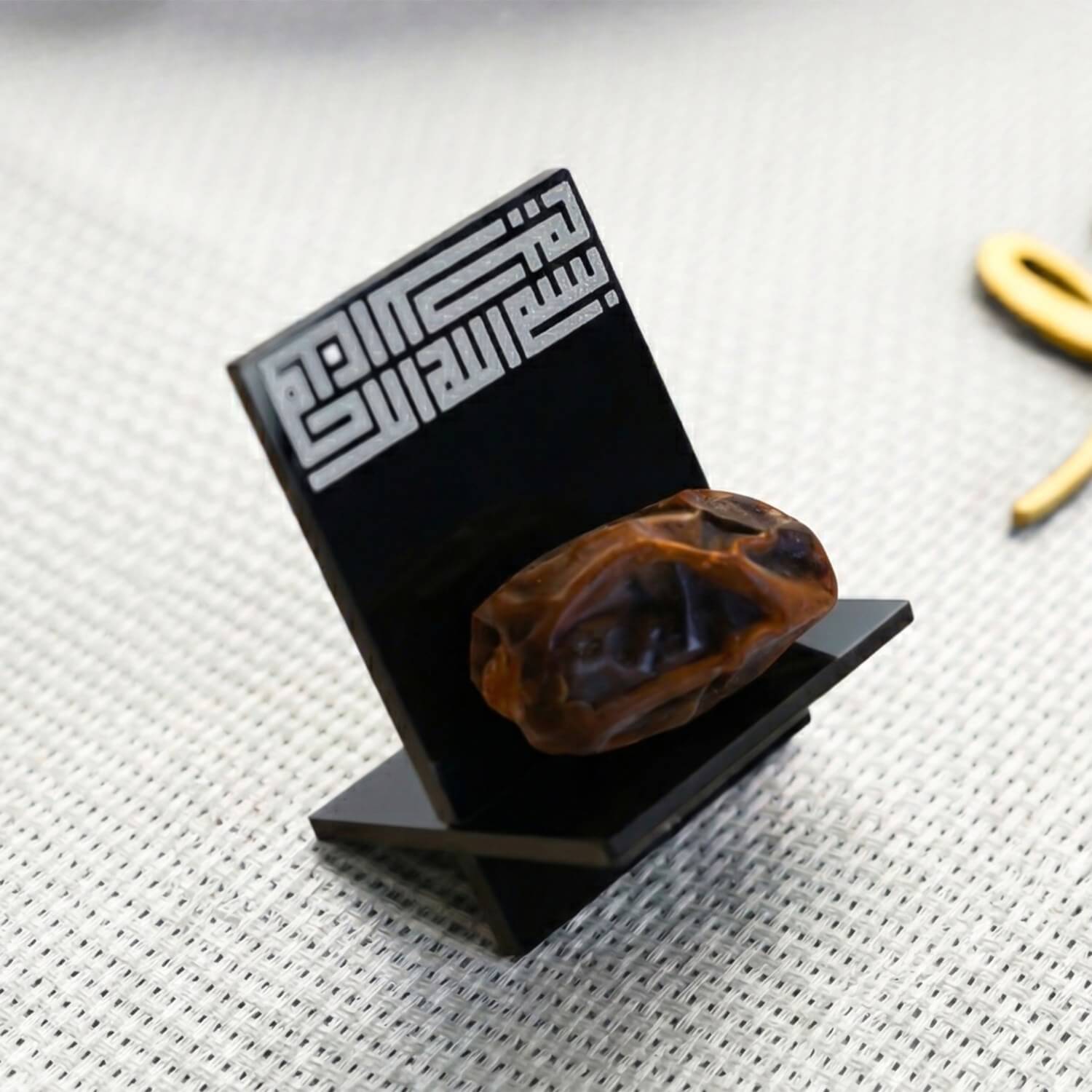 Ramazan konseptine uygun hurmalığımız İslami yazı sanatının en güzel örneklerinden olan kufi hat ile bezenmiştir. Üzerinde yazılı Besmele ile yemeğe Bismillah ile başlamanıza hatırlatıcı bir vesiledir. Bu hurmalık sevdikleriniz için düşünceli ve anlamlı bir İslami hediye alternatifi oluştururken, masa dekorasyonunuzu da zenginleştirir. Besmele yazılı hurmalık ile Ramazan ayının bereketini ve birlik hissini iftar sofralarınıza taşıyın. Diğer Ramazan Süslemeleri ve Dekorlarını görmek için buraya tıklayın!
