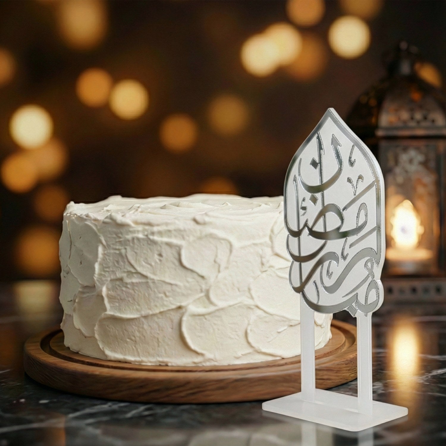 Ramazan mübarek yazılı pasta süsü, mübarek ayın coşkusunu ve şıklığını sofralarınıza taşıyor. Akşam iftar sofralarınızdan çay saati ikramlarınıza kadar her ana zarafet katmak için özenle tasarlanan kek topper, İslami hat sanatıyla masanızda etkileyici bir odak noktası oluşturur. İster kalabalık bir aile iftarı olsun ister sevdiklerinize küçük bir ikram; akrilik süs sunumunuza estetik ve anlam bir hava katacaktır.