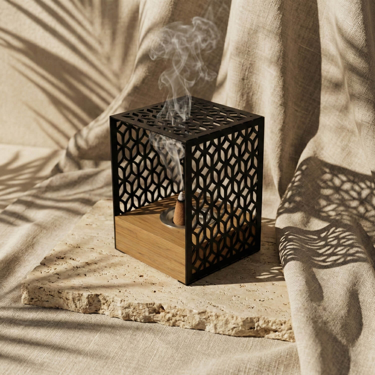 Ahşap standlı metal tütsülük, karmaşadan uzak, sade ve fonksiyonel bir estetiğe sahiptir. Minimalist buhurdanlık, yaşam alanınıza dinginlik katar. Doğal ahşap kaidenin sıcaklığı ile metalin şıklığını birleştiren ürün, sadece bir buhurdanlık değil, aynı zamanda evleriniz için ideal bir masa üstü dekordur.