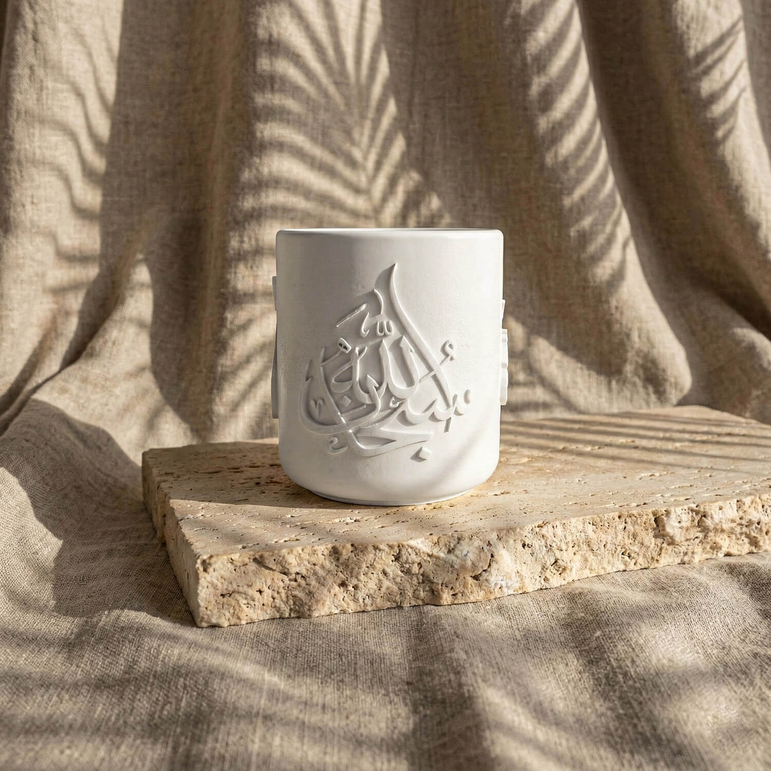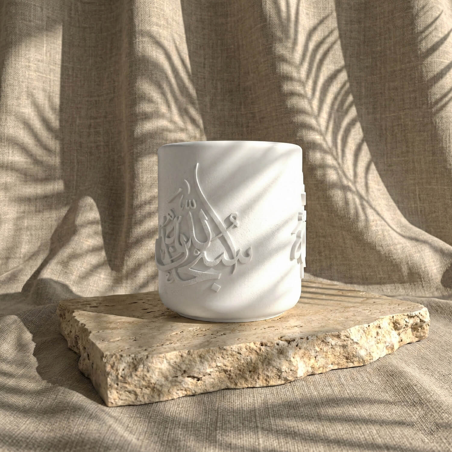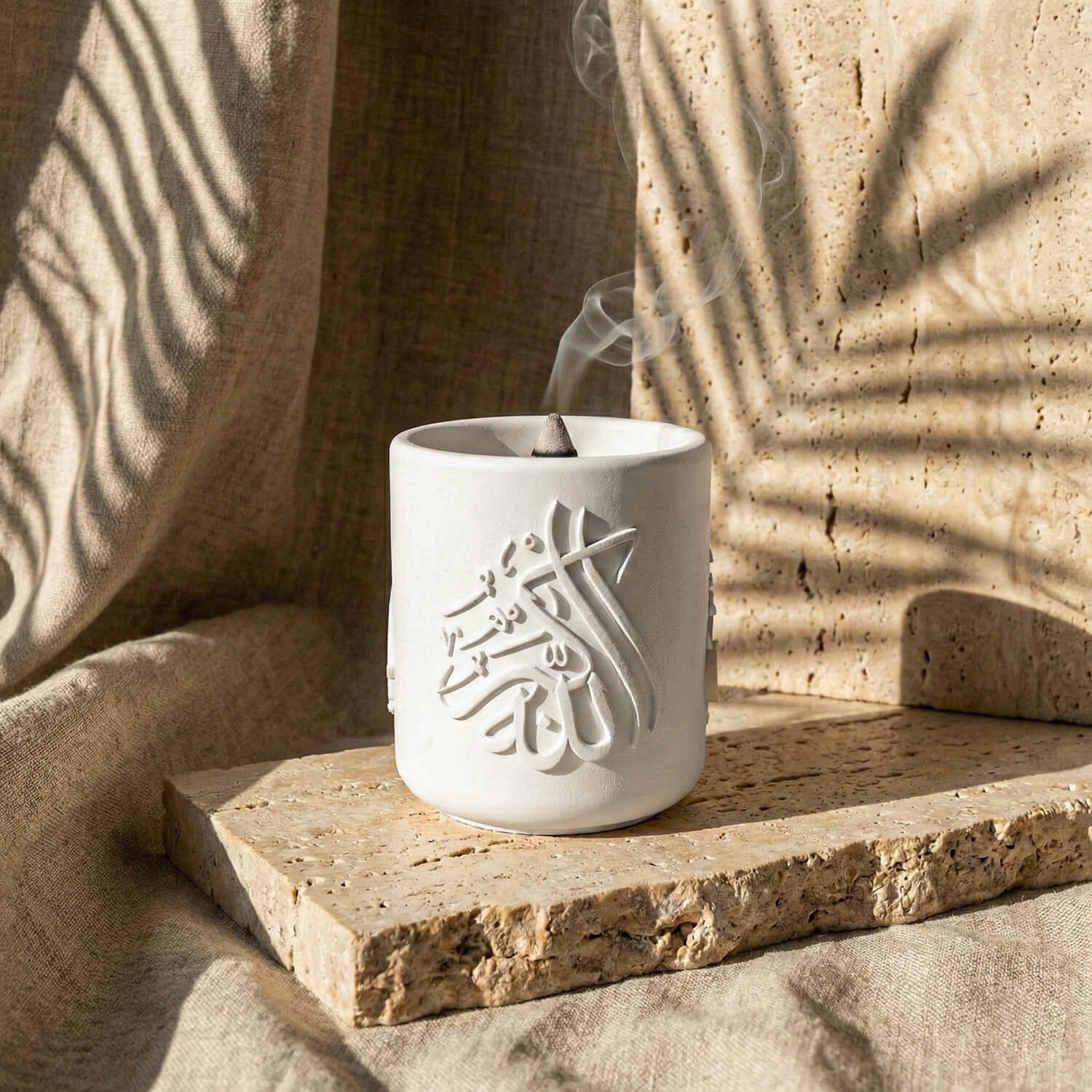 Allah ve Muhammed lafızlı el yapımı taş buhurdanlık, hat sanatının zarif çizgilerinden ilham alınarak tasarlanmış özel bir dekoratif objedir. Üzerinde yer alan “Allah” ve “Muhammed” lafızları, manevi bir atmosfer oluştururken sade ve güçlü stiliyle bulunduğu ortama huzur katar.