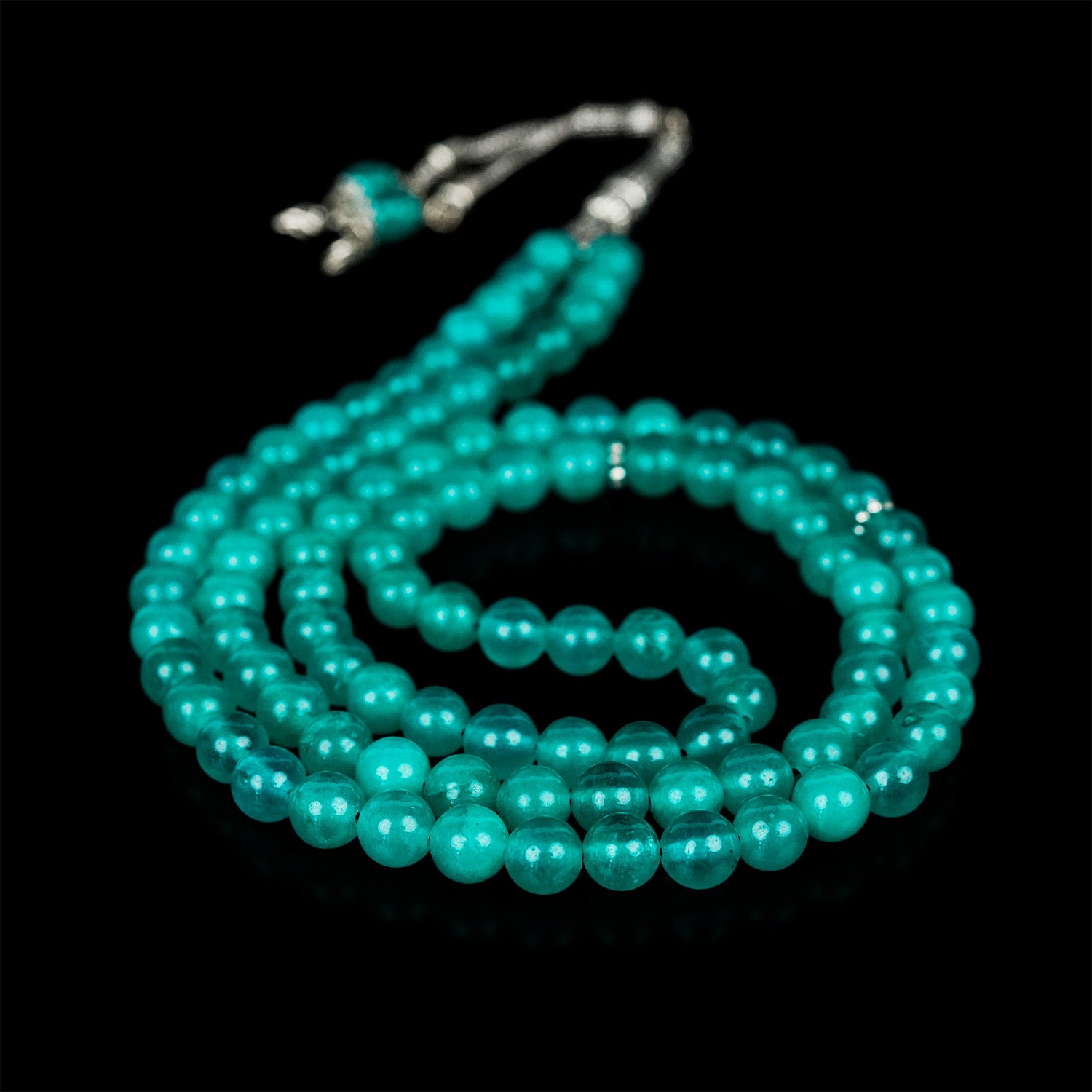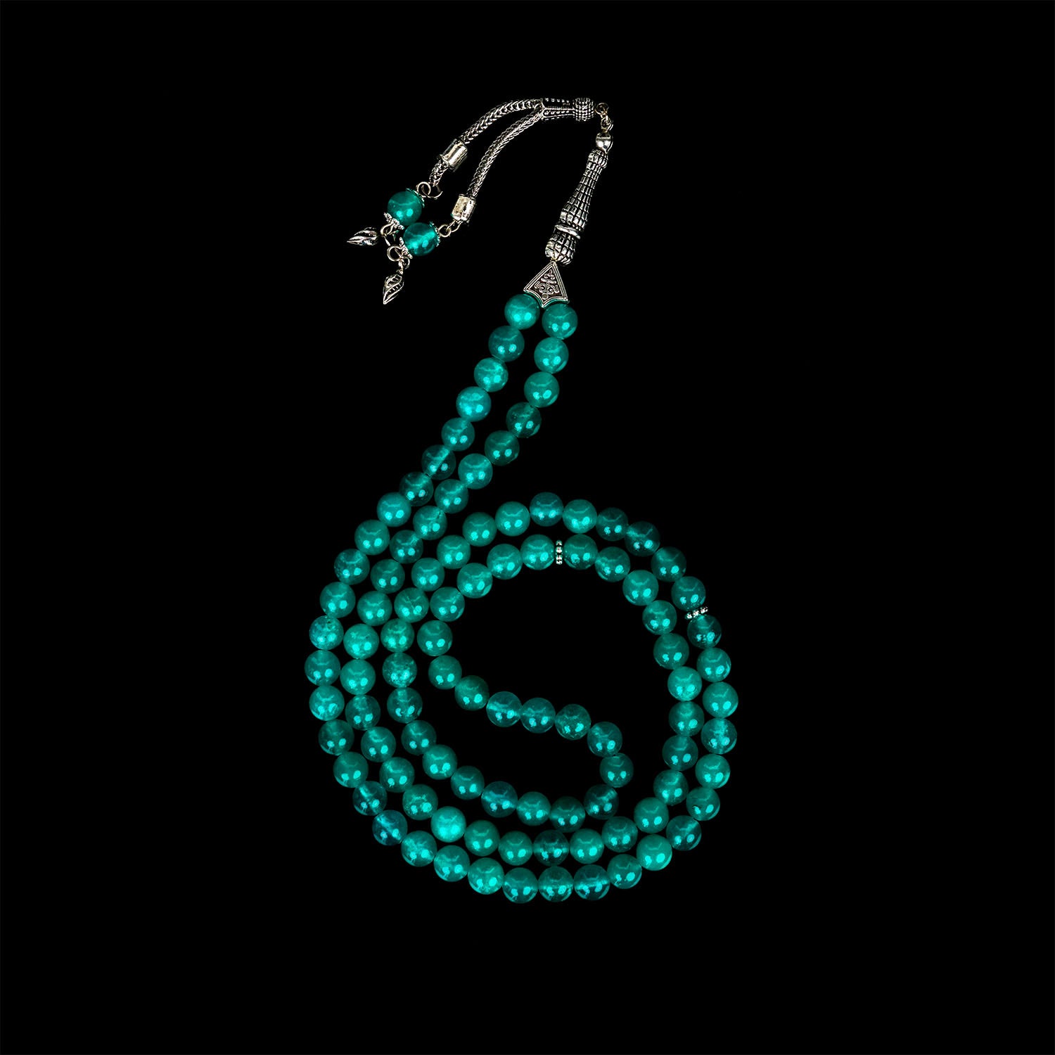 99'luk yesim tesbih, kure kesim 8 milimetrelik boncuklar el dizimi  islamicwallarttr