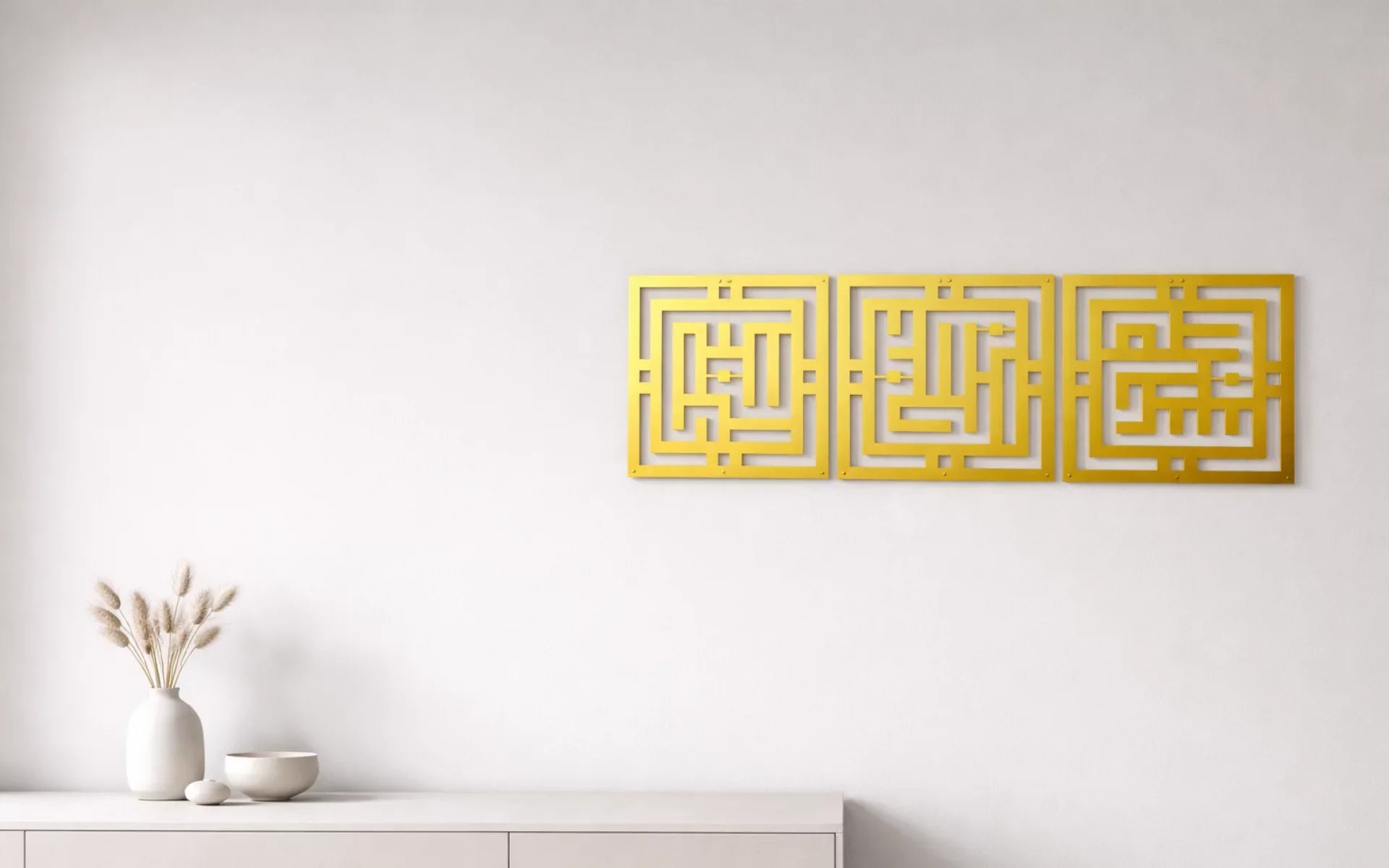 Arap alfabesinin bilinen en eski yazı türü olan kufi hat, kendine has düz ve net çizgileriyle dekorasyonda her zaman fark yaratıyor. Koleksiyonumuzda sunduğumuz kufi hat sanatı çalışmaları, bu köklü geçmişi günümüzün modern ev stilleriyle buluşturarak yaşam alanlarınıza sade ve anlamlı bir hava katıyor.