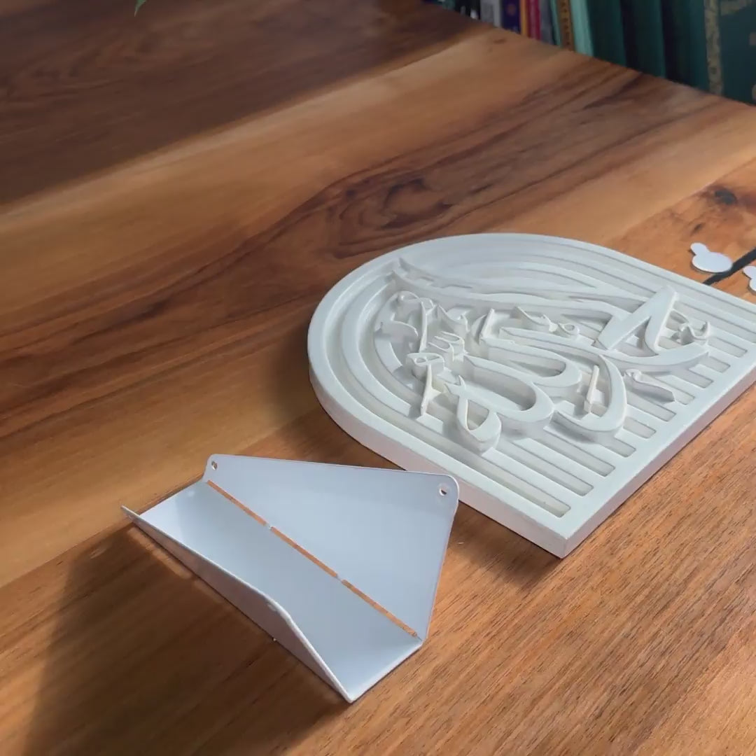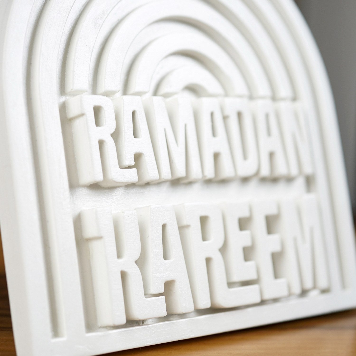 ramazan kerim yazili masa ustu modern dekor beyaz rengiyle dikkat cekiyor islamicwallarttr