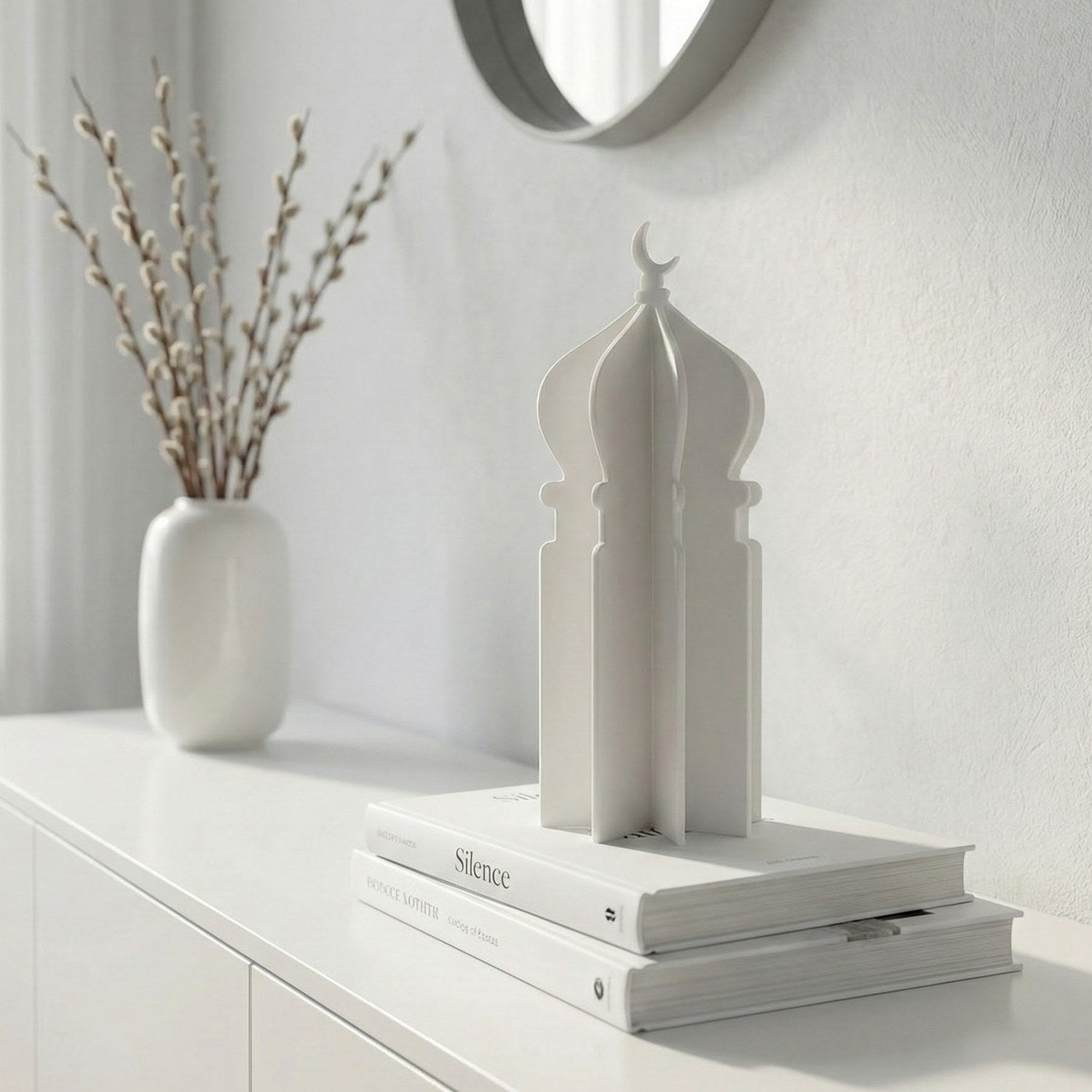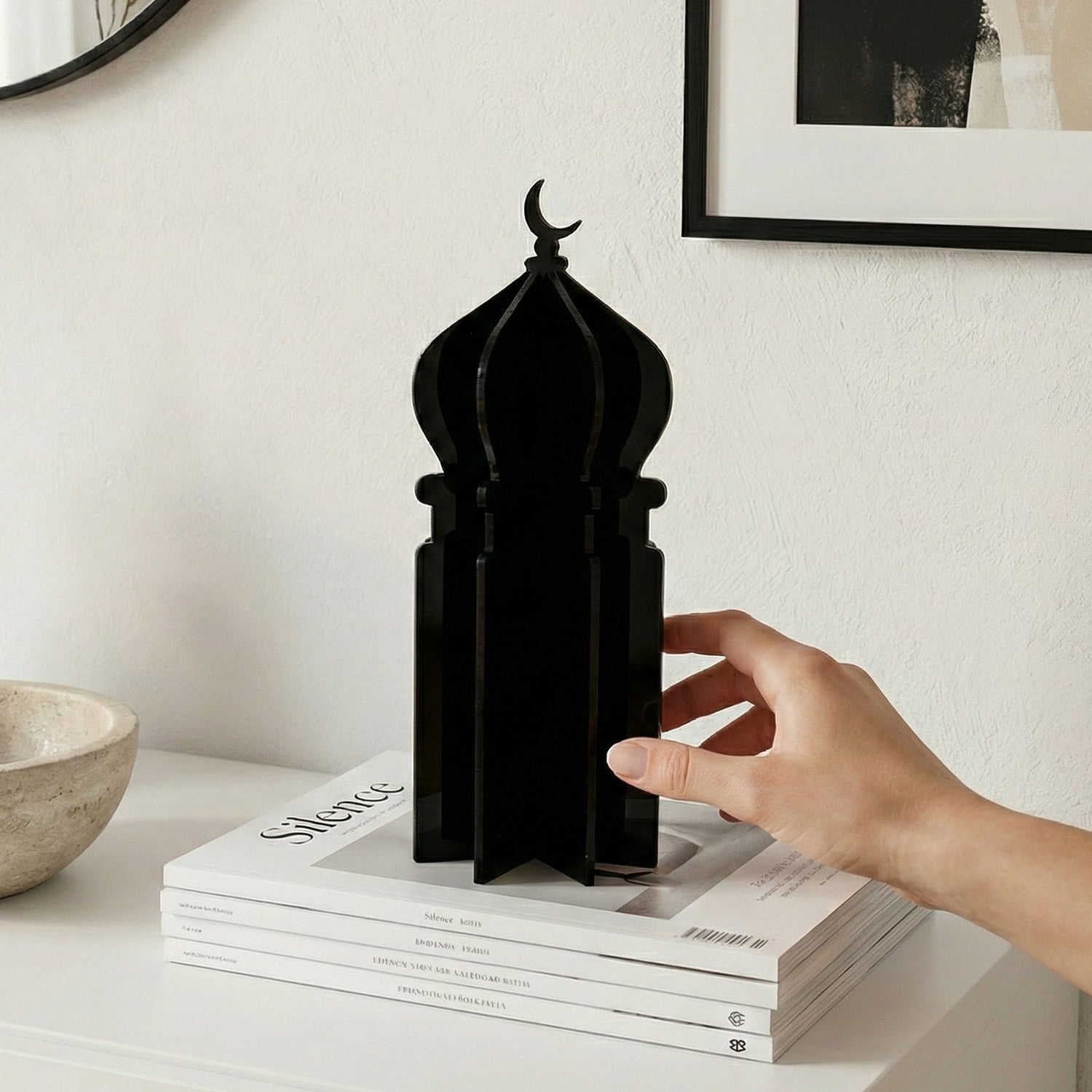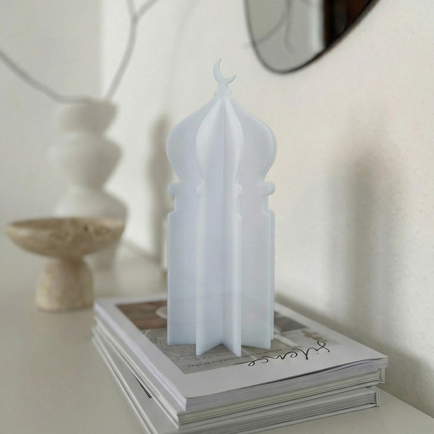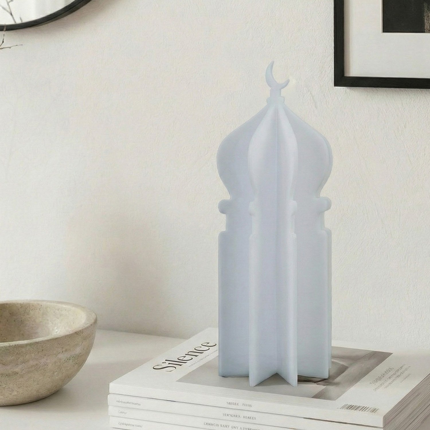 Ramazan masa üstü dekor anlayışına yepyeni bir soluk getiren özel tasarım; geleneksel motiflerin en modern haliyle tanışmanızı sağlıyor. Ramazan atmosferini evinizin her köşesinde hissettirecek akrilik aksesuar, minimalist hatlarıyla dekorasyonunuzu kusursuzca tamamlıyor. Geçmeli yapısı sayesinde üç boyutlu bir sanat eserine dönüşen minare figürü, hem masalarınızda hem de raflarınızda zarif bir odak noktası olacak.