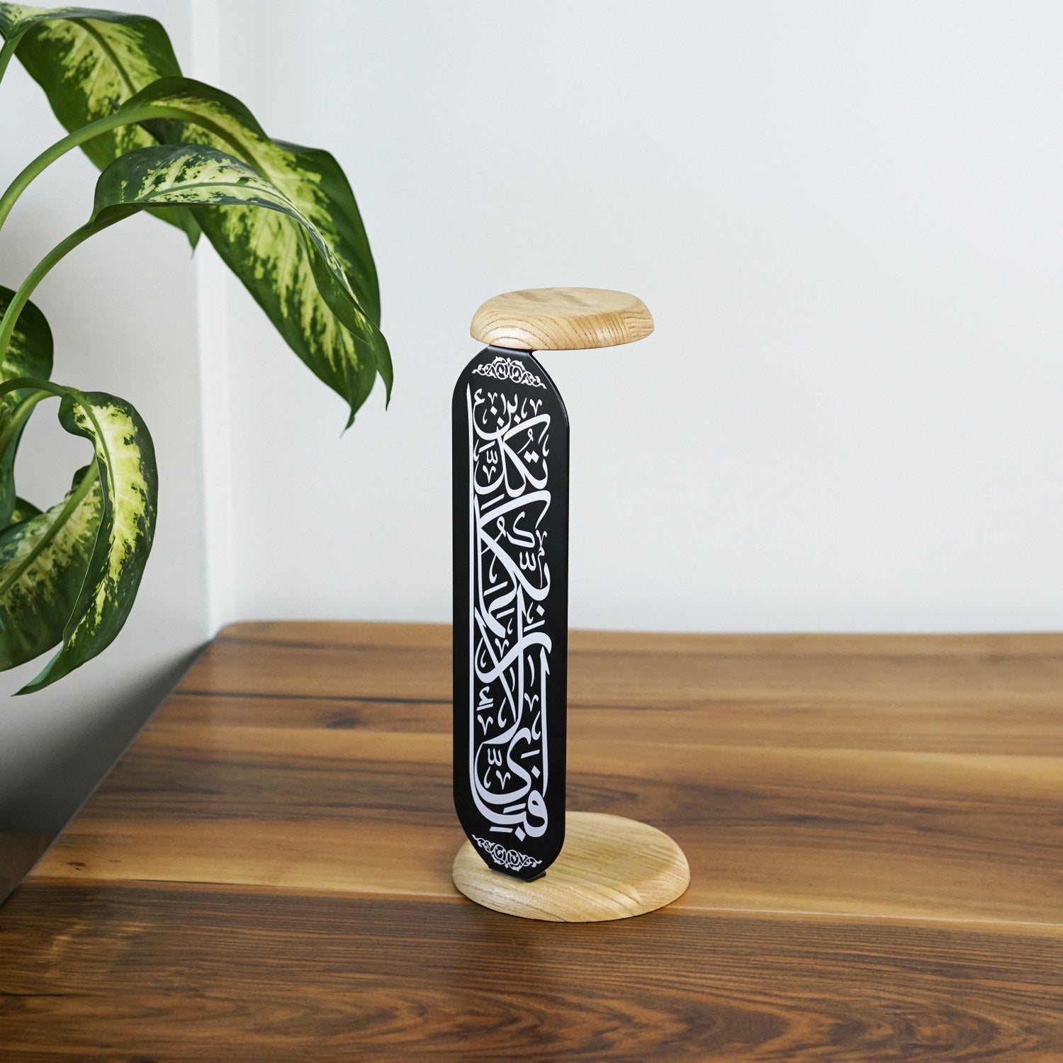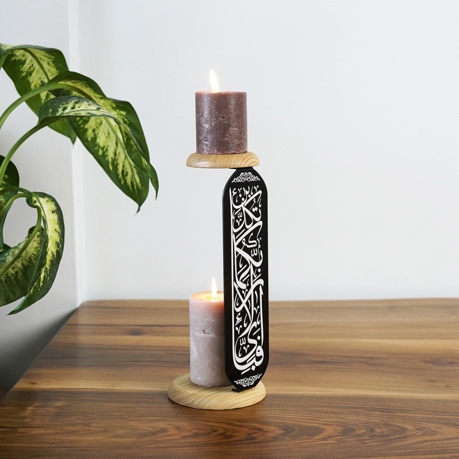 Rahman suresi 13. ayet ahşap standlı metal İslami mumluk, Allah’ın sayısız nimetlerini hatırlatarak bir şükür vesilesi olur. İslami metal mumluk, yaşam alanlarını hem aydınlatan hem de ona anlam katan özel bir parçadır. Rahman 13. ayet yazılı dekoratif mumluk sadece bir masa üstü dekor değil, aynı zamanda manevi atmosferi güçlendiren bir parçadır. Kaliteli UV baskıya sahip mumluk özenli işçilik ile üretilmiştir.