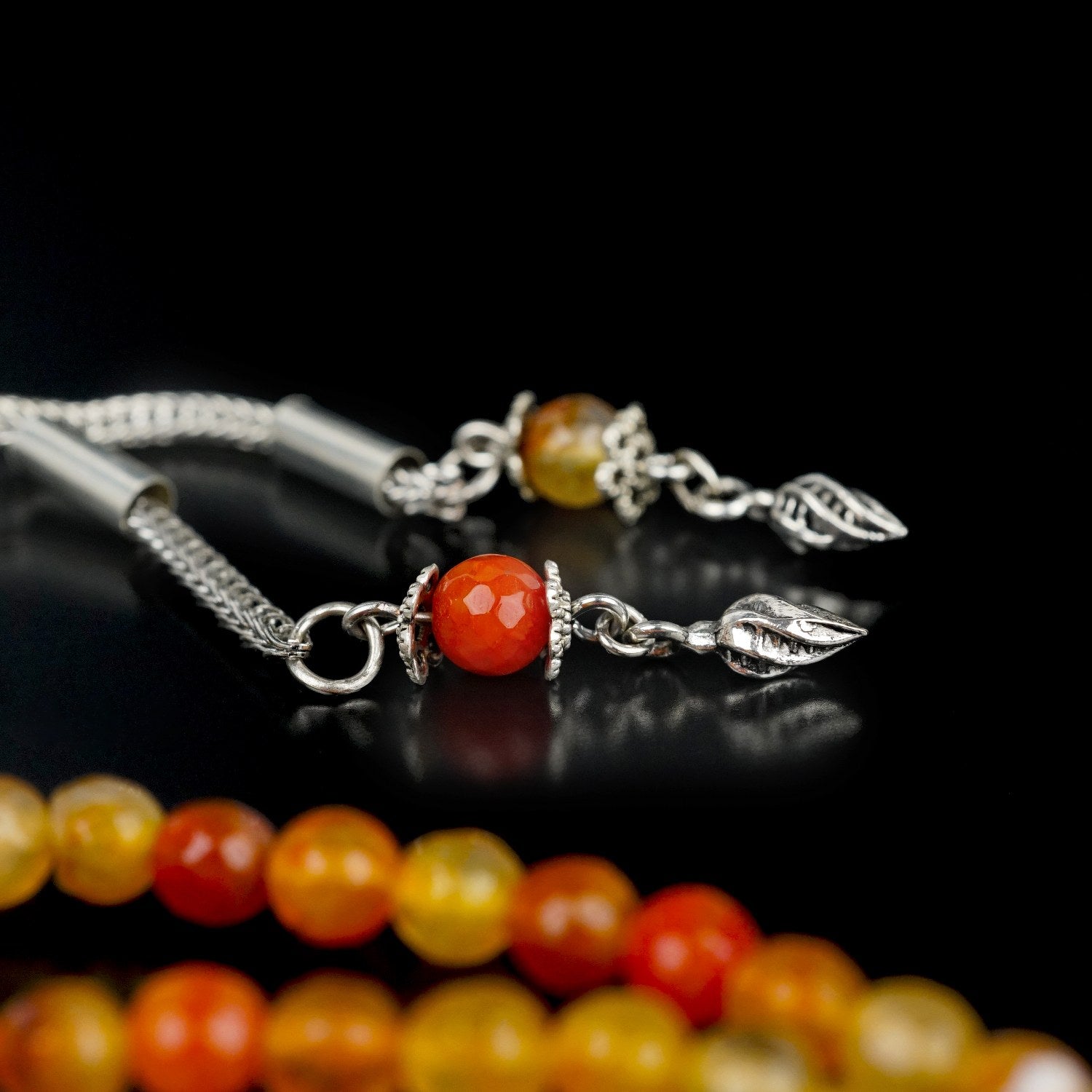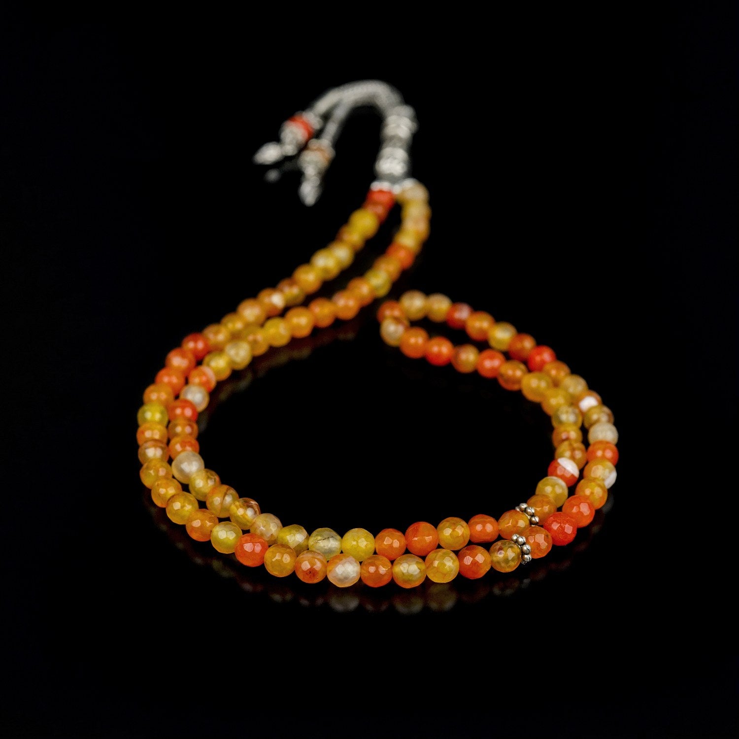 99'luk tesbih, doğal turuncu akik taşlardan el yapımı ile üretilmiştir. Akik taşı, dengeleyici ve stres azaltıcı özelliğiyle bilinir. Akik tesbih, turuncu rengin sıcaklığının yanında yüksek kalite dizimi ve rahat tutumu ile pratik bir kullanım sunar. 99'luk habbe yapısıyla namaz sonrası kullanım için idealdir. Doğal taş tesbih, hem manevi yolculuğunuza eşlik eder hem de günlük ibadetlerinizde size huzur sunar.
