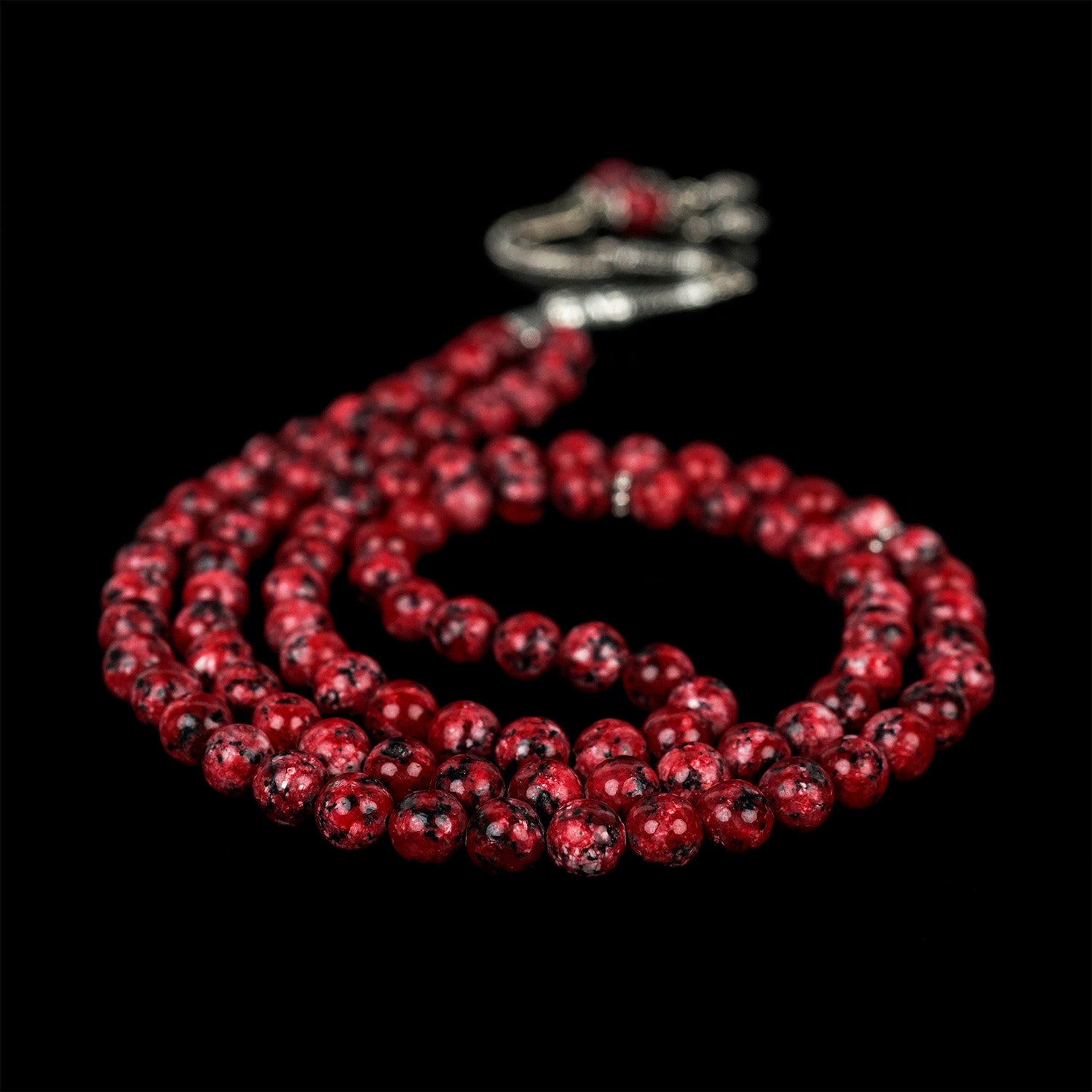 Doğal taş tesbih, kırmızı yeşim boncuklardan el yapımı ile üretilmiştir. Yeşim taşı, manevi gücü, doğal güzelliği ve dengeleyici özelliğiyle bilinir. Yeşim taşı tesbih, zarif ve şık görünümünün yanında yüksek kalite dizimi ve rahat tutumu ile pratik bir kullanım sunar. 99'luk habbe yapısıyla namaz sonrası kullanım için idealdir. Zikir tesbihi, hem manevi yolculuğunuza eşlik eder hem de günlük ibadetlerinizde size huzur sunar.