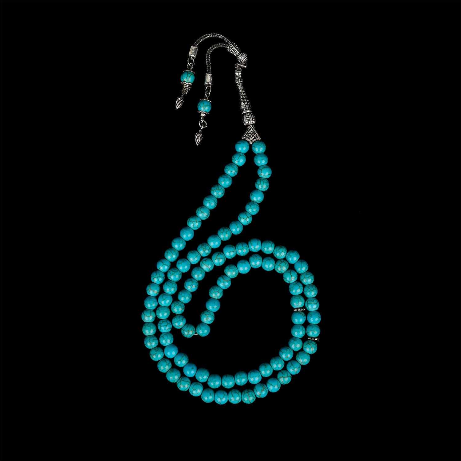 Turkuaz taşı, tarih boyunca birçok kültürde huzur, denge ve koruma simgesi olmuştur. Bizim kültürümüzde de manevi huzuru arttırdığı ve kalpten sıkıntıları arındırmaya yardımcı olduğu bilinir. Her habbesi özenle seçilen doğal turkuaz taşından el yapımı olarak hazırlanan 99'luk tesbih, uzun ömürlü kullanım sunar. Küre kesim boncuklar, rahat bir tutuş sağlar. Doğal taş tesbih, manevi yolculuğunuza ve günlük zikirlerinize eşlik eder.