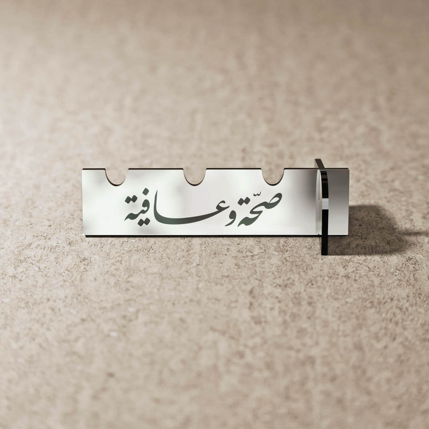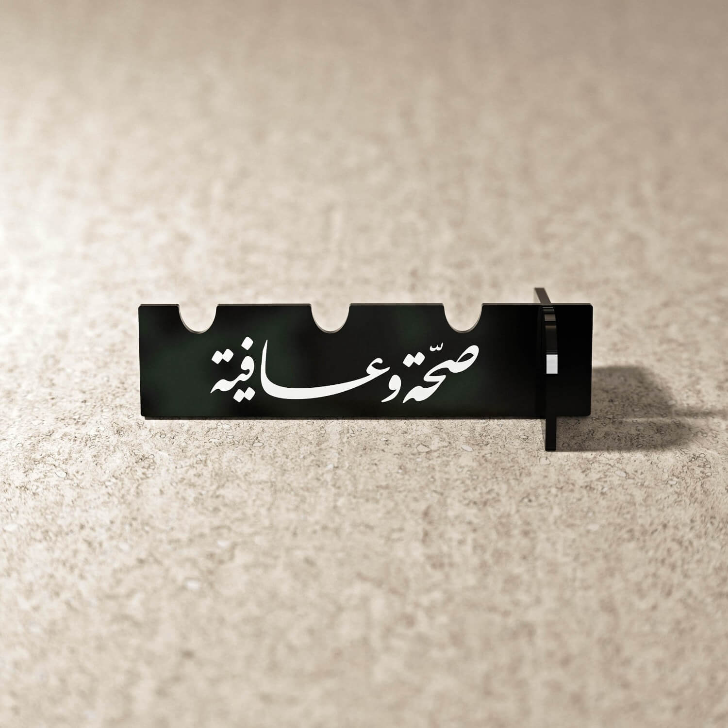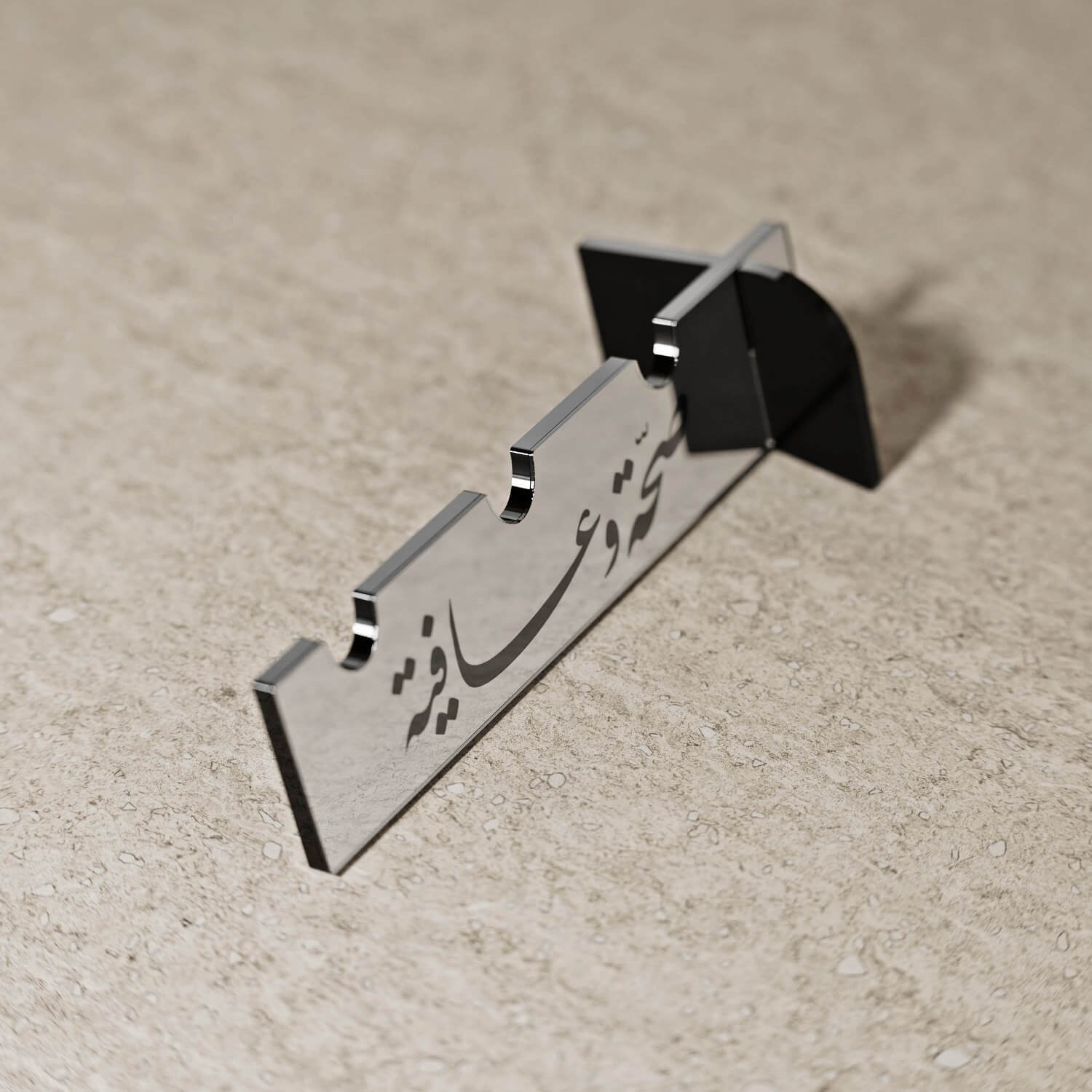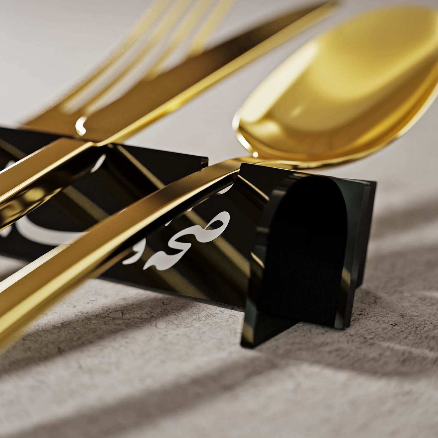 Akrilik çatal bıçak tutucu ile Ramazan sofralarınıza estetik bir dokunuş katın. Üzerine divani hat sanatı ile işlenen "Sahha ve Hana" yani "Afiyet Olsun" yazısı misafirlerinize verdiğiniz kıymeti zarif bir dilek haline getirir. Hem fonksiyonel hem de dekoratif bir aksesuar olan akrilik stand, çatal, kaşık ve bıçaklarınızı düzenli bir şekilde tutmanıza yardımcı olur. yardımcı olur.