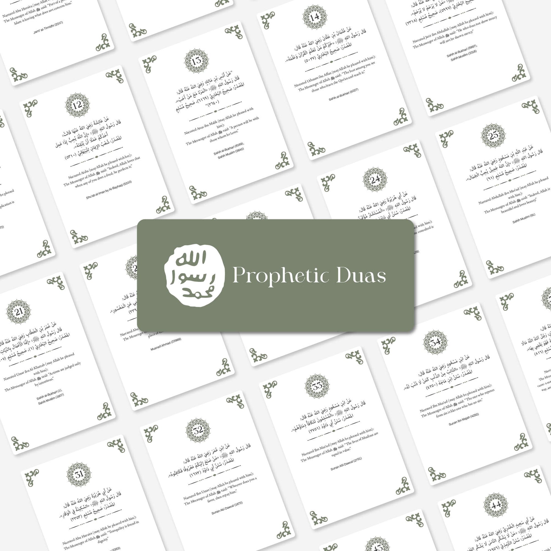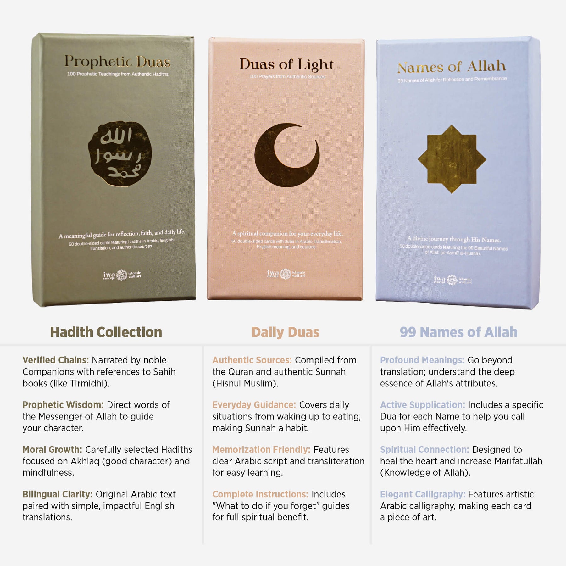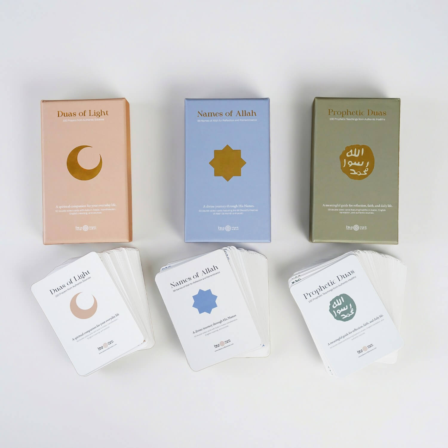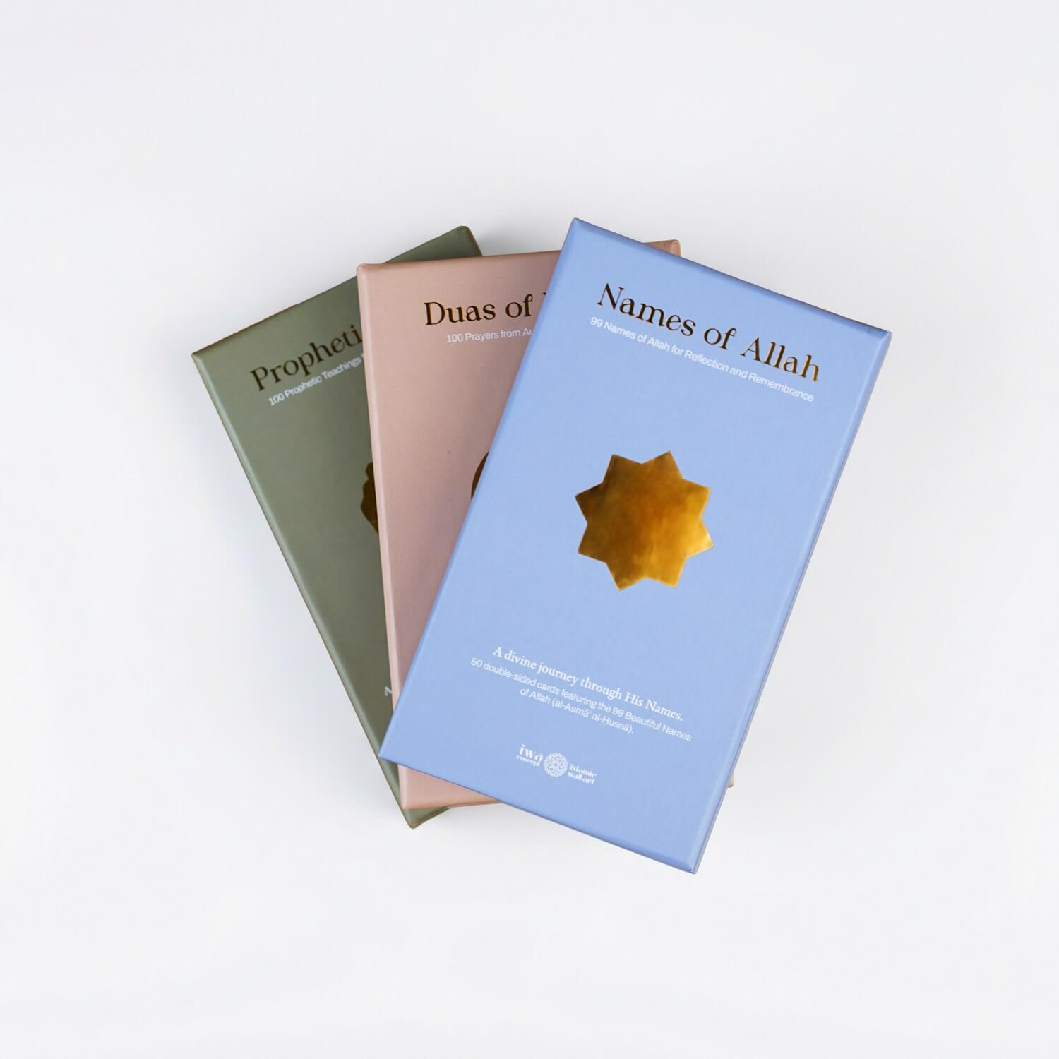 Hadis-i şerif, Esmaül Hüsna ve günlük dua kartları maneviyatınızı güçlendirecek ve günlük yaşamınızda size rehberlik edecek bir set! Estetik tasarımı ve evrensel diliyle inancınızı modern yaşamın merkezine taşır. Bu kartlar, her gün size Allah (cc) ve Resulü’nü (sav) hatırlatacak zarif bir rehberdir.