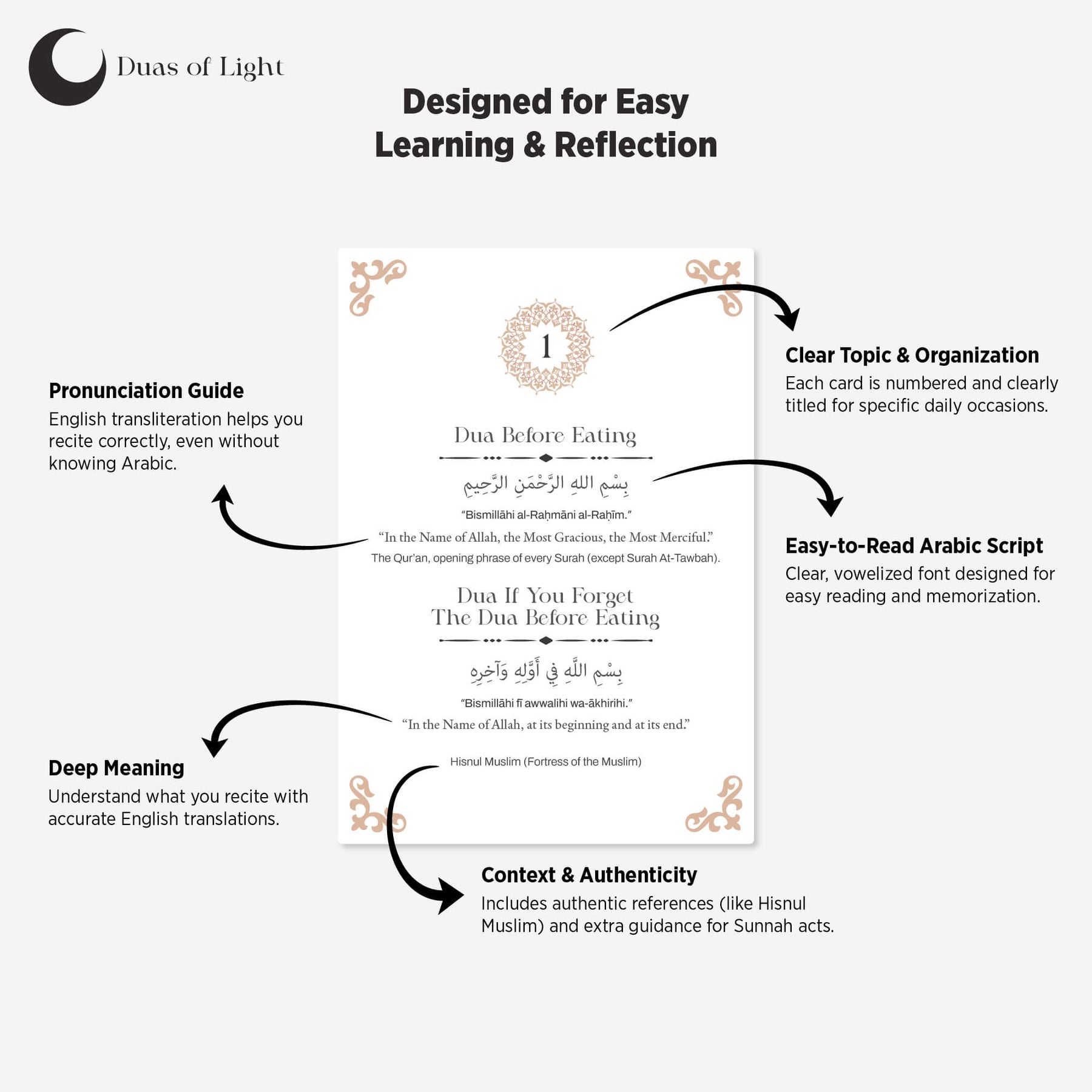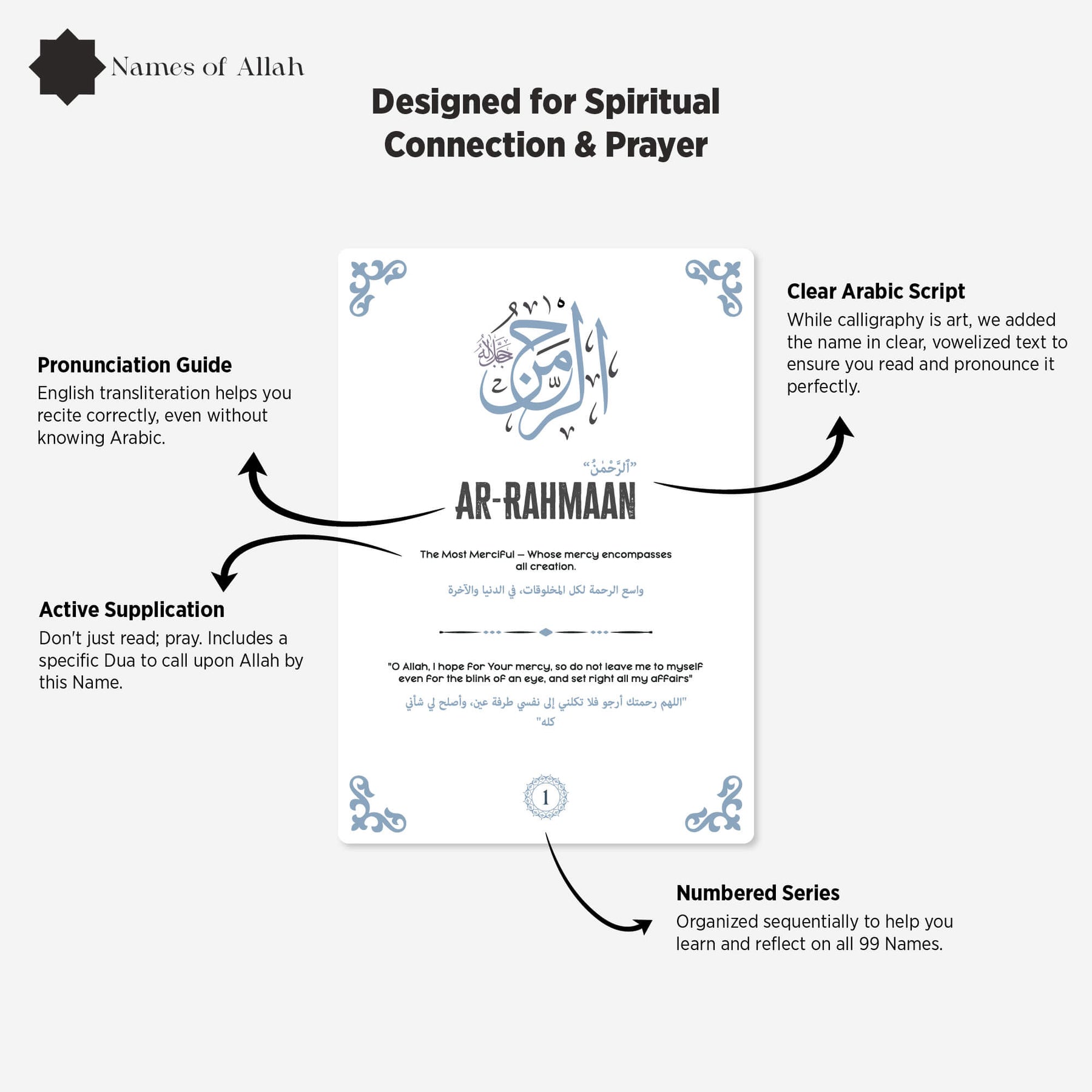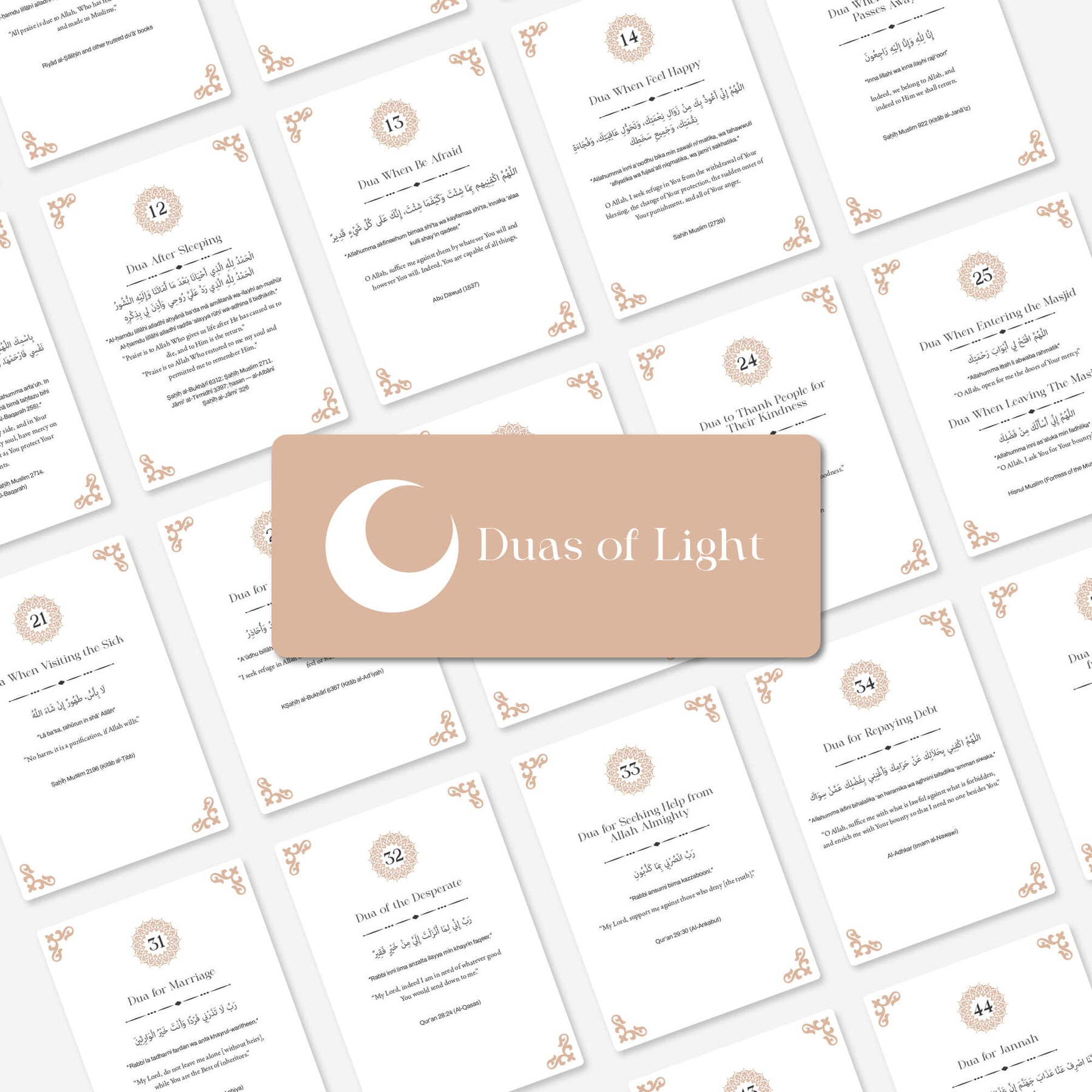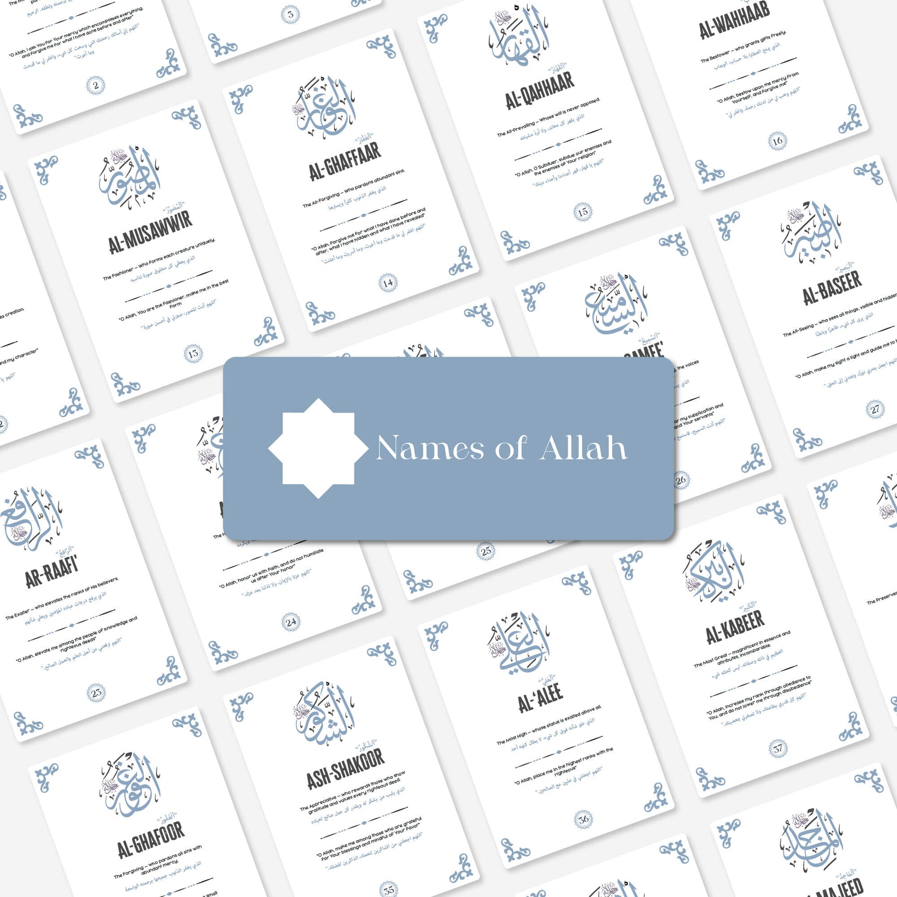 Hadis-i şerif, Esmaül Hüsna ve günlük dua kartları maneviyatınızı güçlendirecek ve günlük yaşamınızda size rehberlik edecek bir set! Estetik tasarımı ve evrensel diliyle inancınızı modern yaşamın merkezine taşır. Bu kartlar, her gün size Allah (cc) ve Resulü’nü (sav) hatırlatacak zarif bir rehberdir.