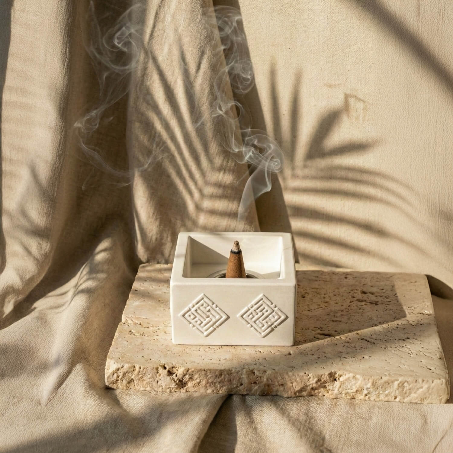 Sübhanallah, elhamdülillah, Allahu ekber ve la ilahe illallah zikirleri, kulluğumuzu hatırlatıcı birer manevi rehber niteliğindedir. Bu rehberi evinize taşımaya vesile özel taş tütsülük, İslam sanatının en kadim yazı stillerinden biri olan Kufi hat sanatı ile yeniden yorumlandı. Minimalist kare formu ve doğal taş dokusuyla, bu ürün modern ev ve ofis dekorasyonuna manevi bir derinlik katmak için tasarlandı.